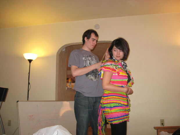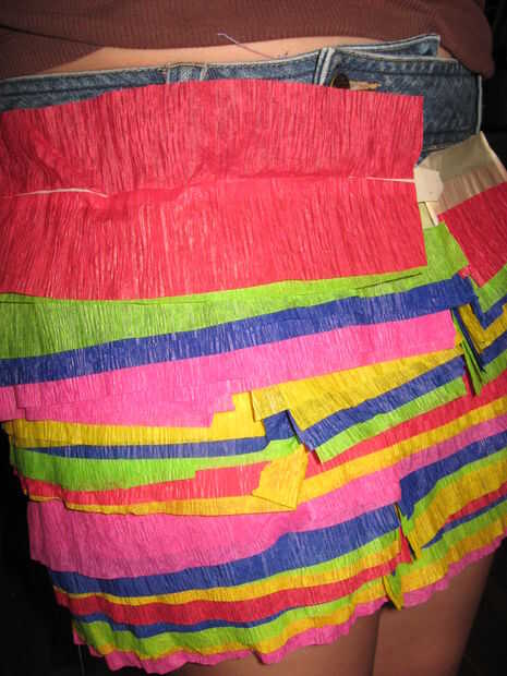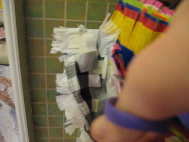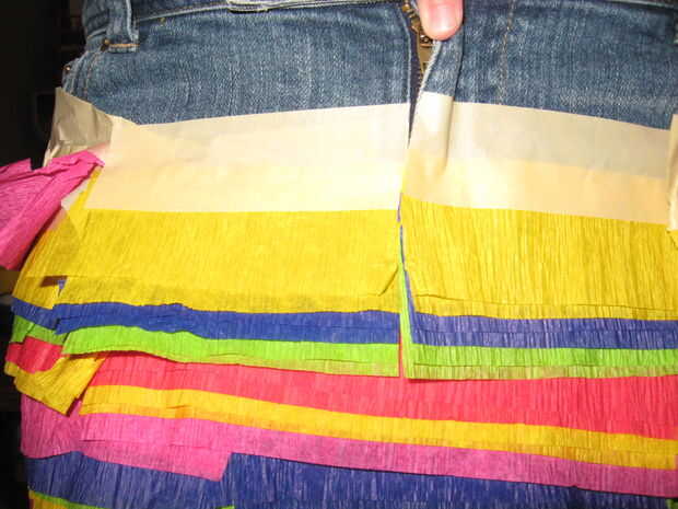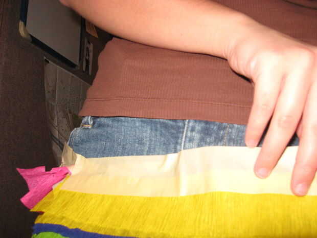 En caso de no hacerlo la manera correcta, fijarla tirando de nuevo la mayor parte de la cinta, luego adherir nuevamente mientras usa la falda. Hacer más cinta de piñata para compensar la diferencia.