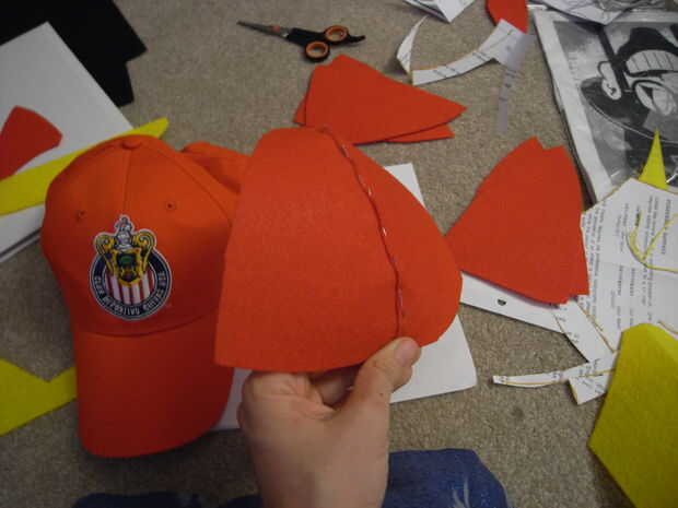 1. corte seis triángulos redondeados del mismo tamaño y forma como hace su gorra de béisbol.