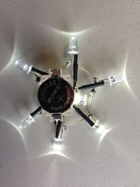 Si inserta tu celular de moneda ahora debería ver todos los LEDs encienden. Que todos sean relativamente el mismo brillo. Si usaste LEDs claro, enfocados veremos rápidamente por qué LEDs difusas son probablemente mejor. Puedes ver en mis fotos que la mayoría de la luz está brillando hacia el exterior. Tengo una solución para eso más adelante.