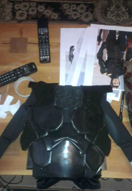 Hecho esto, la espuma era negro rociado y colocado encima de la armadura con las piezas de dos pecho caliente pegado y cosido en su lugar también.