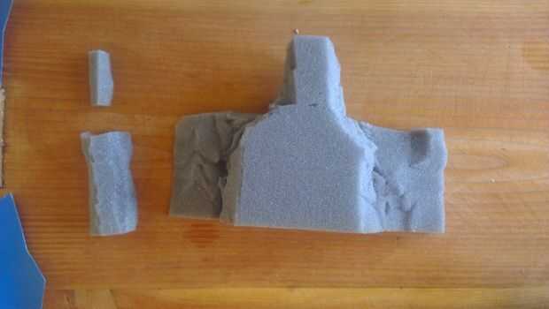 Me decido a crear a una especie de pedazo de centro para el área del pecho de espuma. Para recibir algunos espuma sofá tenía colocación alrededor y cortar una forma básica pero deja dos lados largos por lo que puede ser sostenido en lugar por las placas del pecho. Estas donde aproximadamente creado como pensé al pulverizarse negro y el traje sería que sensible.
