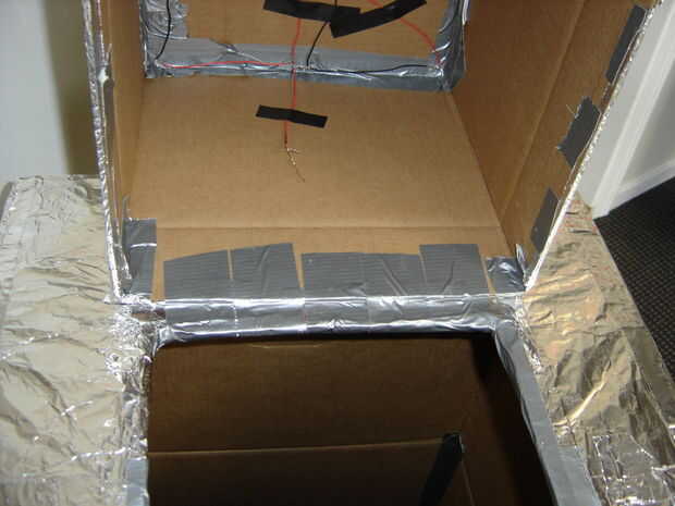 La cabeza necesita ser conectado al cuerpo, pero quería ser capaz de obtener aire sin sacarse el traje de cuerpo entero. Inspirado en un niño cuyo nombre desconozco pero que había construido un traje con una cabeza articulada, usé cinta para sujetar la cabeza sobre una bisagra. Felicitaciones, chico al azar de otro dormitorio.