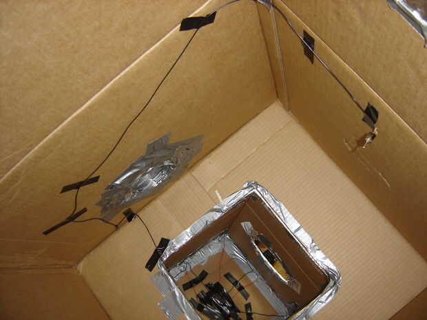 Usando cinta aislante u otro adhesivo, coloque la batería en el interior de la cabeza. El 9V es poco, pero lleva un montón de peso así que asegúrese de que está firmemente en su lugar. Recuerde colocar en un lugar donde no interfiera con la cabeza.