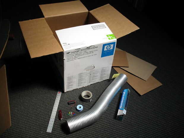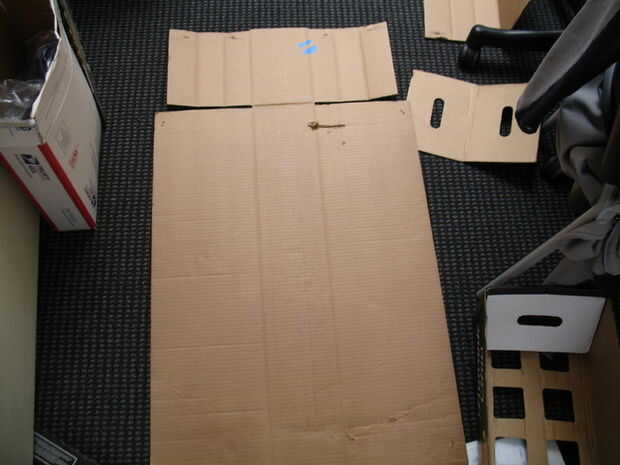 Dos cajas de cartón. Estos actuarán como la cabeza y el cuerpo; el cuerpo de uno debe ser substancialmente más grande que la cabeza. Dimensiones de la caja fueron: un cubo de 1 pie por cabeza y 19.5 pulgadas 23 pulgadas, 29 pulgadas, para el cuerpo. El cubo de 1 pie es estándar (y realmente no he podido encontrar un cuadro apropiado así que construí mi propio. Acabo cortar cinco 1 pie por 1 pie cuadrados y les grabó juntos firmemente con cinta adhesiva, ver fotos), pero el tamaño de la caja del cuerpo es variable. Escoge un tamaño que se ajuste y que se puede encontrar.
