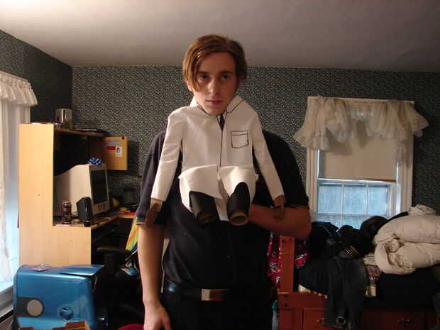 El cuerpo científico sí mismo era apenas un esqueleto de cartón envuelto en tela blanca para asemejarse a los abrigos largo que los científicos usan siempre. Las piernas estaban envueltas en tela negra para mostrar que llevaba pantalones. Las manos y pies fueron cortados más hasta cartulina.