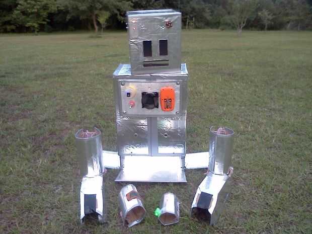2 agujeros fueron perforados luego en la parte superior de la sección 4" en cada panel y en ambos lados de cada panel (alrededor de los bordes). Agujeros correspondientes fueron entonces perforados en la parte inferior del cuerpo de robot, para fijar los paneles.