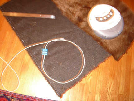 Entonces medí alrededor del borde del círculo dibujado mediante, um, un cable USB (no tenía práctica cinta métrica). Utilizando una regla, bosquejado hacia fuera las dimensiones para el lado del ratón - un rectángulo alta como la Roomba y tan larga como el perímetro de la Roomba. Aquí es donde las cosas se complica un poco. Dependiendo de qué tipo de tela utilizas, puede ser una dirección discernible a lo que pone la tela. Esto es muy obvio en imitación piel - cuando usted 'frote al revés', se puede saber. Yo quería hacer un ratón cuya piel fue la forma correcta. Así que dibujé el rectángulo de lado para que cuando cortar, la piel vería como si fluía naturalmente de la parte superior del ratón a la planta. Esto debería hacer sentido si hace referencia nuevamente a la imagen del ratón en la introducción.