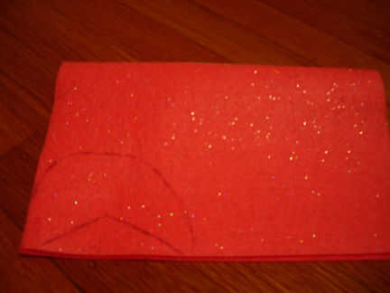 El fieltro rosa es más fácil de cortar. Tomar una pieza y doblar por la mitad. Establecer el oído patrón sobre el fieltro doblado y trazas en pluma oscura. Mantener el fieltro doblado - cuando usted corta ese patrón hacia fuera, usted conseguirá dos sentí piel auriculares, uno reflejo del otro.