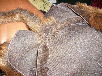 Tomar la pieza de cola que sólo suturan y la "base" de la misma hacia el no-piel-de la parte superior del perno por lo que hay alrededor de una pulgada de cola dentro de la línea de costura. Así, al coser los lados en la parte superior de la cola ya será colocado donde debe estar.