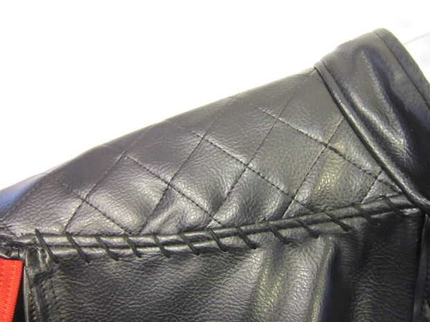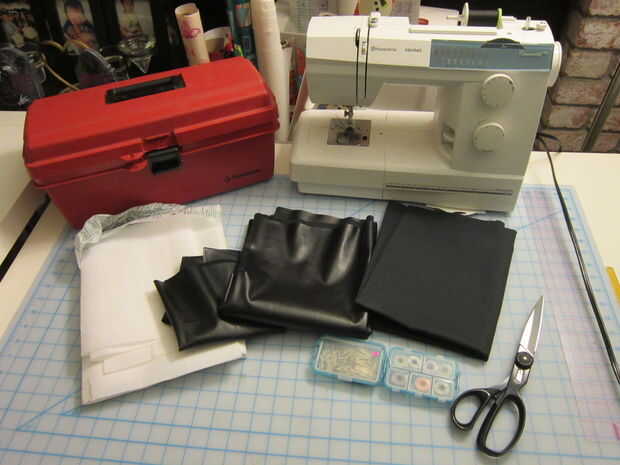 Para la pieza superior del hombro, usé una capa base de negro tela y entretela fusible para espesar para arriba. Con mi máquina de coser he creado un patrón acolchado con puntadas rectas. Utilicé una regla y un lápiz de color blanco para marcar a guías antes de cada puntada para mantenerse recto y uniformemente espaciados, luego limpiar las marcas de lápiz de color con un paño húmedo.