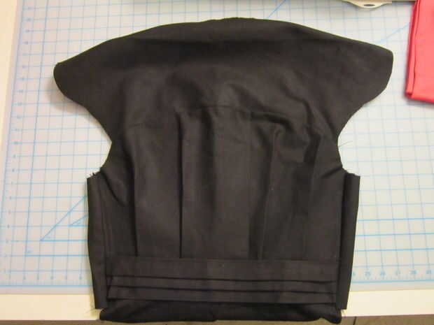 Desde que se hizo este traje para mi hermano, yo lo utilizó como modelo y piezas drapeadas de retazo sobre él usando las clavijas para crear la forma de la chaqueta.