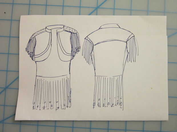 Empecé por ver la película gancho y esbozar ideas de cómo debe construirse la chaqueta. Una vez tuve un dibujo decente y una buena idea de cómo hacerlo, me puse a hacer un patrón.