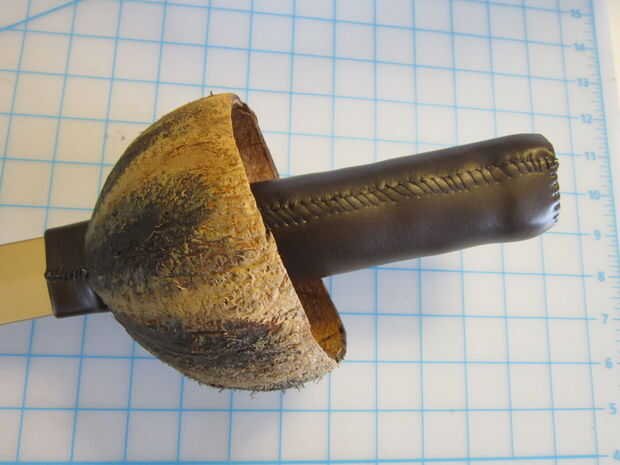 Terminó por envolver el mango con cuero del faux y puntada de la mano cerrada.