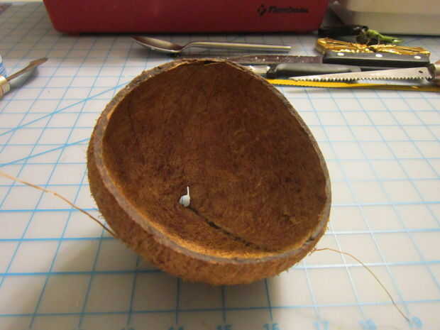 Usando un pincel y la pintura, pinté diferentes tonos de marrón en la cáscara de coco. Entonces permitió la pintura seca completamente.