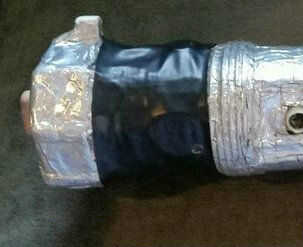 Se trata de la primera capa de la cinta aislante. Su principal propósito es asegurar la colocación de las piezas de PVC al cuerpo principal. Envuelva la cinta alrededor de la parte vacía del tubo base primero y construir hasta el PVC. Se espera que la brecha será inferior para ayudar a acomodar la mano y recuerda ser muy generoso con la cinta. A dos dólares un rollo, que puede sin duda pagar un segundo corro si lo necesita.