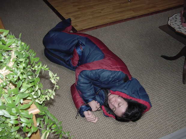 yo acabo de volver de mi viaje de mochilero del día 5 y el último día, logré obtener de parte de mi saco de dormir en la cremallera y rasgó! Sabía que si lo dejé, saldría todo el relleno hacia abajo y habría plumas por todas partes! Afortunadamente