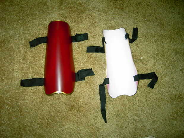 Para esta armadura inferior de la pierna diseñó un patrón que se asemejaba a un escudo alargado de bombero o policía. Era todo una sola pieza y grande para la olla de agua, así que utilizo el horno para calentar este. Si utiliza el horno, no salen por encima de 250 grados. A mantener el control hasta su disquete y cumplen con su shin. Ah y alguna ropa que no deja calor. Sólo pintó, lo había detallado y había añadido algunas tiras de tela con pegamento caliente. Luego até velcro a la tela por lo que puede venir dentro y fuera fácil.