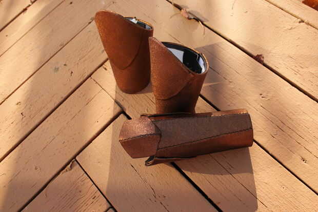 4. En el antebrazo, crear un molde de su brazo. La muñeca es alrededor de plano, pero el codo es más estrecho en el interior y exterior y más ancho en los lados. El borde exterior hice más y lo hizo en un punto.