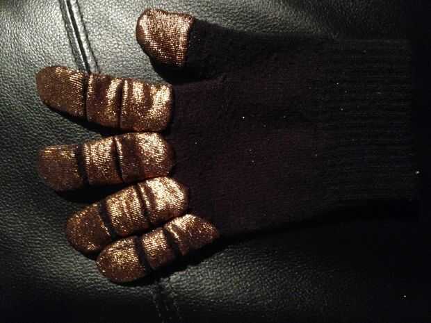 - Traza la punta de los dedos y dejar .5cm de un borde al cortar de la tela de cobre. Necesitas 2 de cada dedo.