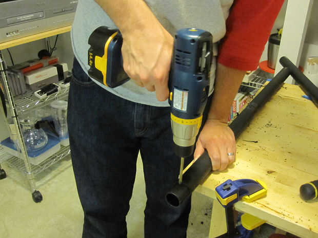 Las secciones de tubo de los estantes se convertirá en el post de lo Segway.  Las secciones de tubo se diseñan para caber juntos y 2 secciones de tubo combinadas son la longitud perfecta para un puesto de Segway.  Perfore un agujero en la superposición para asegurar las dos secciones con una atadura.  Desglosar otro agujero aproximadamente 2 pulgadas desde la parte superior.  Este orificio debe estar en el extremo más estrecho del tubo.  Asegúrese de perforar por ambos lados del tubo hueco.