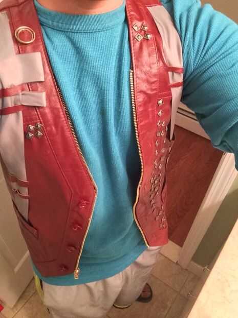 A continuación, tomar las cosas de diamantes cuadrados y agregar el diseño en el lado izquierdo del chaleco, como se ve en el cuadro de referencia anteriormente en la inescrutable. Nota: este paso es tiempo y hace que los pulgares lastimados, mucho.