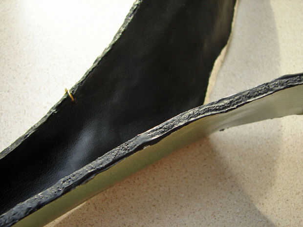 Porque sentía que las piezas que se veía demasiado delgadas, respaldada con fieltro y luego los forrados con piel artificial. No me gustó cómo los bordes eran, así que corrió una gota de pegamento caliente a lo largo y luego lo aplanado y pintados de negro.