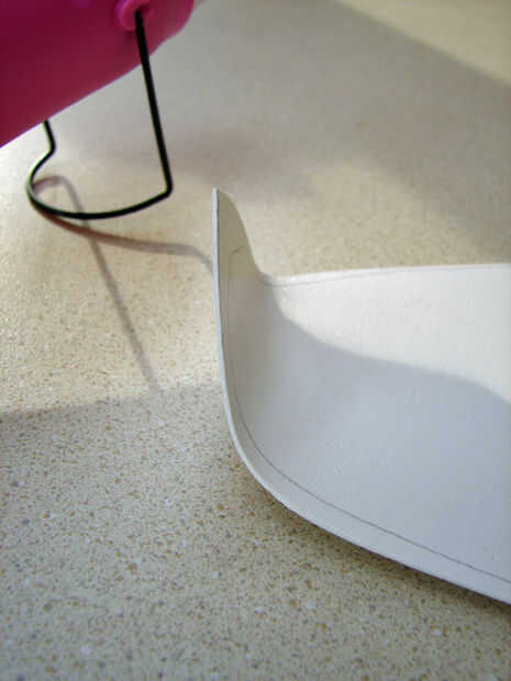 Realmente no quería que estas piezas parece como de plástico; Yo iba para algo entre tela y metal. Para conseguir un aspecto más áspero, más orgánico en las piezas, calienta áreas específicas un poco demasiado a propósito con una pistola de grabación en relieve, que de una sensación como que podría se hicieron de metal batido.