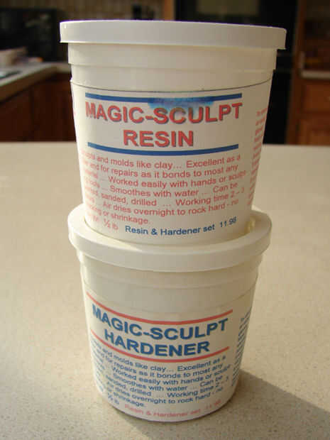 Magic Sculpt: Magic Sculpt es una arcilla que se endurece en una resina que es muy difícil y puede tomar lo que casi cualquier herramienta puede lanzar en él. Mezcla en una proporción de 1:1 de endurecedor a la resina, funciona como modelado en arcilla por unas horas y luego configura durante la noche. Otras compañías también hacen productos que funcionan de esta manera, pero Magic Sculpt es el que conozco y he estado contento con su facilidad de uso y precio.