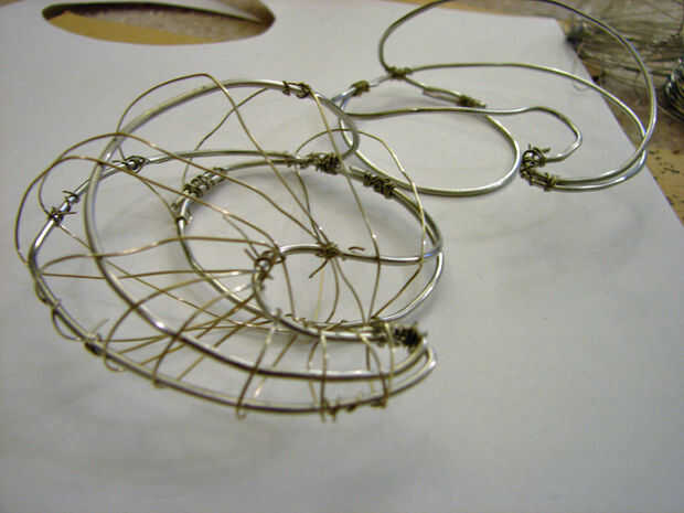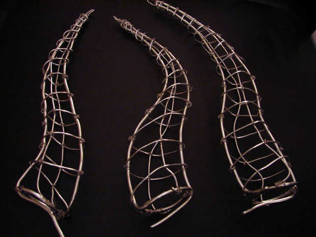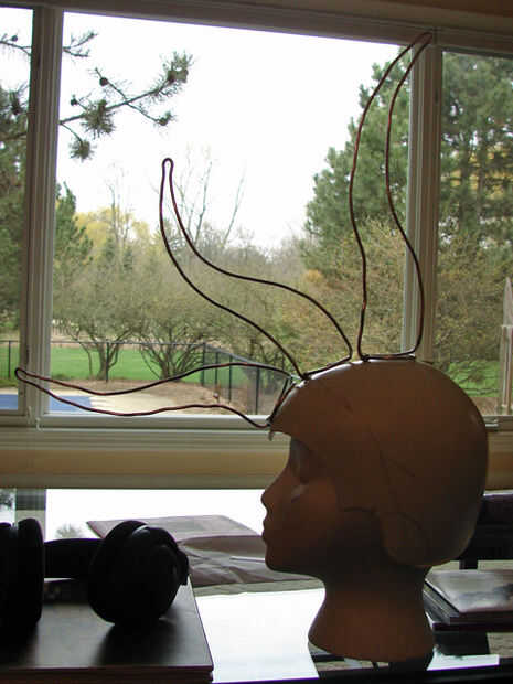 1) haciendo que la base: la base de los cuernos está hecha con escultura de alambre de aluminio, que es muy fuerte mientras que siendo fácil y sencillo de forma. Eran fleshed hacia fuera con alambre de aluminio más fino y algunos hardware del medidor de luz que tenía alrededor.