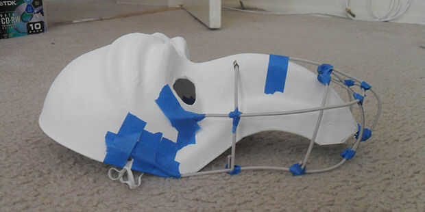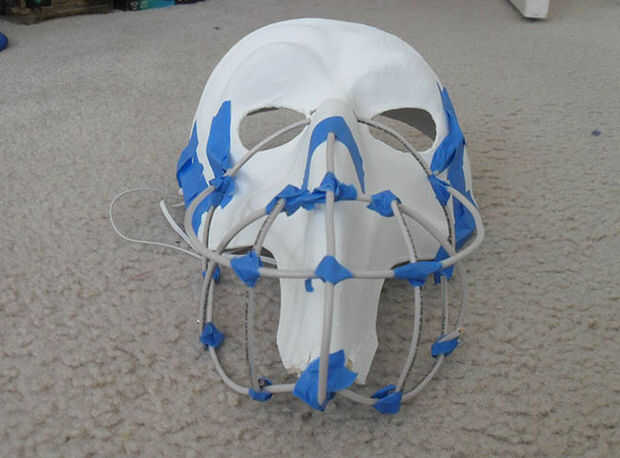 Me gusta usar calibre 12, alambre revestido para construir los marcos de mis máscaras. ¿Por qué cubierto? Bueno, sobre todo apenas debido a su menos agudo y pokey para trabajar con. Cinta de las intersecciones con cinta adhesiva para fijar el marco en su lugar.