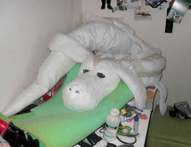 El cuerpo era la bestia de este proyecto. Para la parte inferior, elegí un algodón ligero blanco sobre algo más borrosos para evitar esta demasiado caliente para usar. Había un montón de medición involucrados aquí. Acabo de hacer siluetas toda la longitud de mi tela porque quería ser gran! ¿Planeé envolver el cuerpo a mi alrededor como una boa para que se volver demasiado pesada, así que cuanto más tiempo mejor, justo?