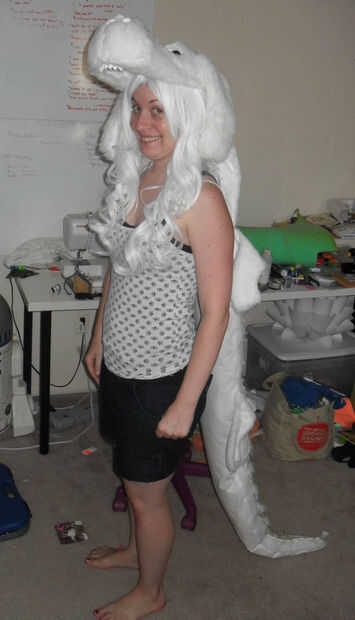 Para rematar el look que hice poco fingerless de los guantes de la piel y tela de escala, así como tapas de arranque de piel blanca. Una peluca blanca que era una necesidad y encontré uno para super barato en amazon. Muchos de ustedes probablemente ya saben que tienen algunas pelucas de cosplay muy asequible si estás dispuesto a esperar una semana más o dos para el envío internacional.