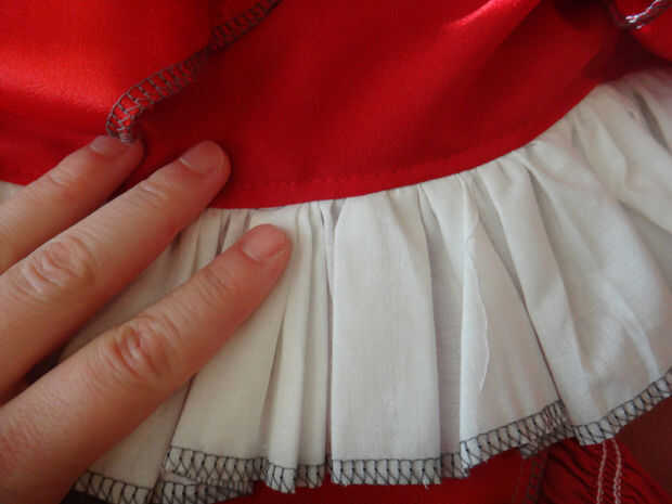 - Volantes blanco: para cada 1 pulgada del volante tarda 5-6 pulgadas de tela para hacer. Tomar la circunferencia del borde de la falda y veces por 5-6 y la longitud necesaria para la fabricación de volantes.