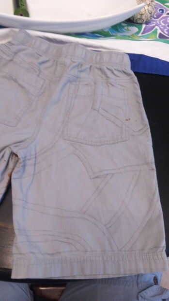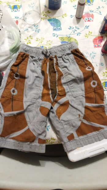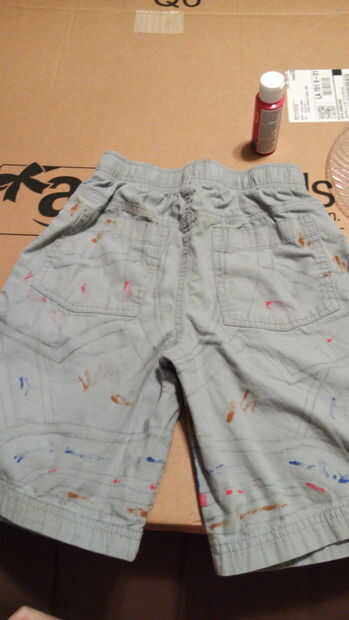 Antes de pintar, poner algo dentro de los pantalones cortos para dejar la pintura de que se filtra a través de.