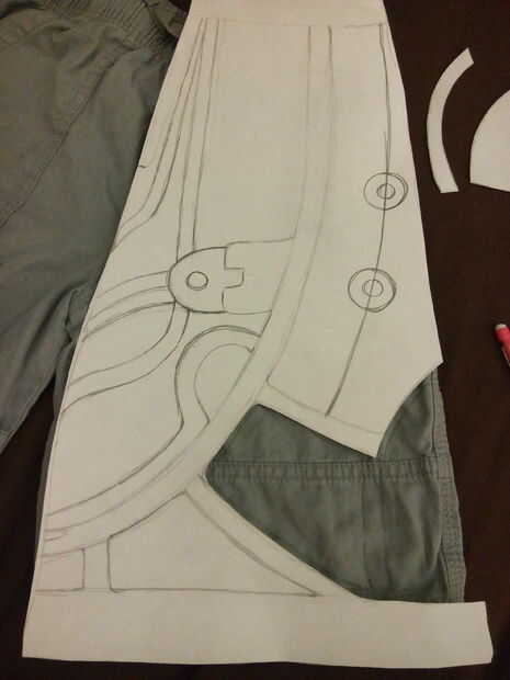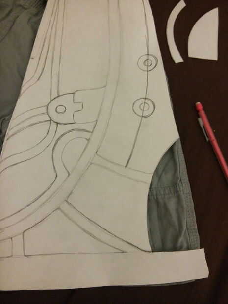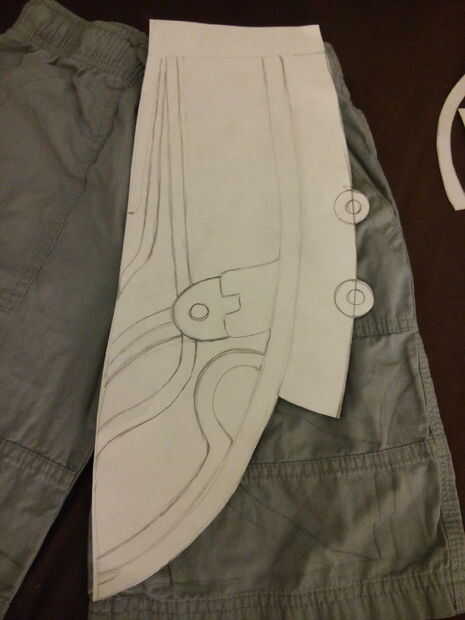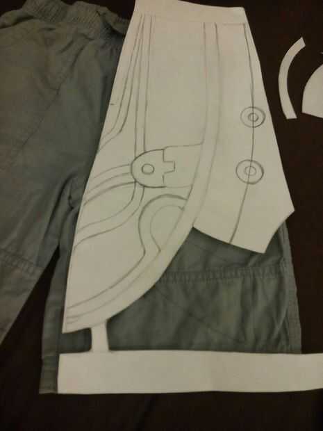 Corte la sección siguiente del patrón. Pone patrón en pantalones cortos y traza la nueva línea.