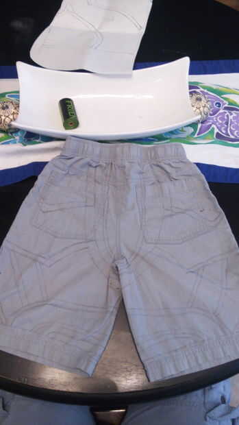 Voltee el patrón y rastro en la otra pierna de los pantalones cortos.