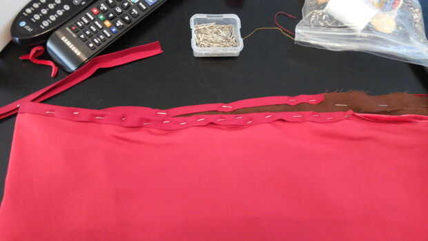 Esto es cuando cosí el marrón (revestimiento interno) a la red pero te recomiendo saltar a hacer y añadir los bolsillos al rojo primero. Guarda algunos dolores de cabeza más adelante.