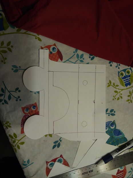 Espalda: trazar el borde inferior de la espalda del chaleco en cartulina. Se usa para dibujar la mitad del patrón. Doblar el afiche por la mitad y corte para tener un patrón simétrico.