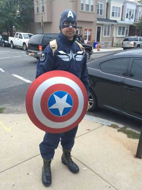 que quería hacer un traje de Capitán América desde cero así que me puse a hacer precisamente eso. Empecé a coser el traje pieza por pieza, por lo que fue un ajuste, personalizado y luego utilicé un viejo molde de pizza para usar como el moldeado para