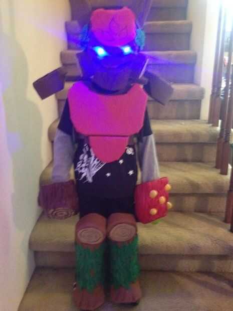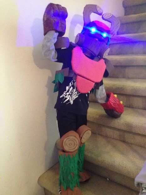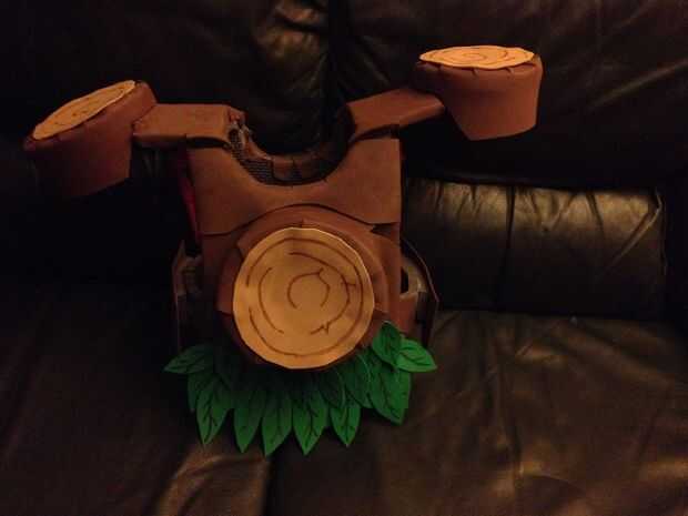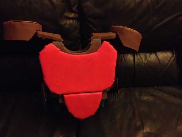 La idea era hacer un tipo de Chaleco tipo de la base velcro alrededor de la cintura como un chaleco antibalas. Una vez que esto fue mas que comencé a trabajar sobre los detalles de la pieza de la máscara y el pecho. Esperé hasta el último minuto (anoche) para limpiar todos los detalles más finos y hacer la pierna cubre. Una cosa que aprendí que ayudar con los detalles, hice un montón de EVA fina hojas de espuma. y en cualquier lugar de imperfección (por doquier) cubrí con estas hojas de espuma. También hice una pequeña franja alrededor de los lados y la espalda con éstos así como cubierta que cubre la pierna. Antes de que pegué los ojos en su lugar me cavaron a través de mi pecho de herramienta y encontró un agujero vio poco sólo un poco más pequeño que mis luces de té y utilizado para perforar un agujero (a mano) a través de los ojos del máscara y el casco. Luego pegué los ojos sobre el agujero. Después de empujar la té-luz detrás era capaz de hacer un pequeño agujero en la parte de la pupila de la máscara de la llevaron a empujar a través.