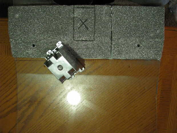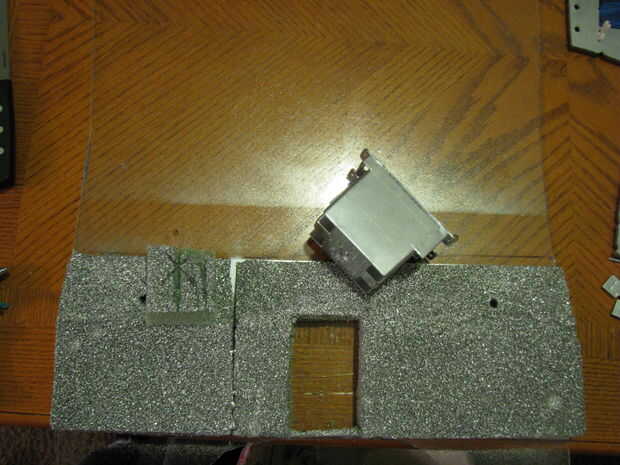 Trazar el cuadro sobre la espuma, luego se corta el agujero en la espuma y el acrílico.