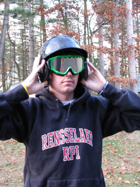 Probablemente el paso más fácil cada vez. Tomar tus gafas puestos encendido, luego coloque el casco de béisbol sobre las gafas.