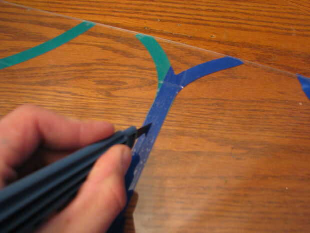 Para este paso i utiliza cinta aislante para diseño el diseño en el acrílico. Una vez su uso en, un cuchillo de acrílico o una dremel para cortar sobre las líneas.