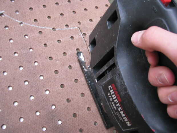 Pone el corte acrílico piezas en el tablero de clavija y luego dibujarla con un rotulador. Despegar el acrílico y use una sierra de calar para recortar la forma. Para hacer el tablero de clavija de lucir mejor los pinté con pintura de aerosol de plata.