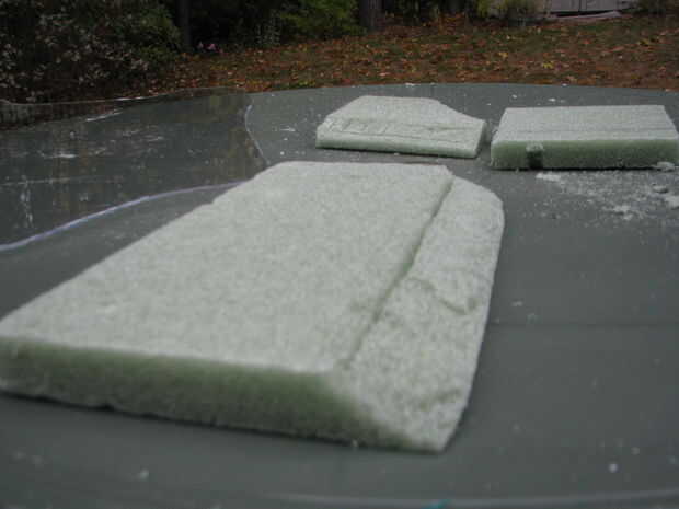Primero establezca la espuma en el acrílico, luego corte la espuma a una pinzas (yo usé un cuchillo de afeitar/cortar el ángulo). Una vez terminado con la configuración que forma la espuma caliente de pegamento en su lugar.