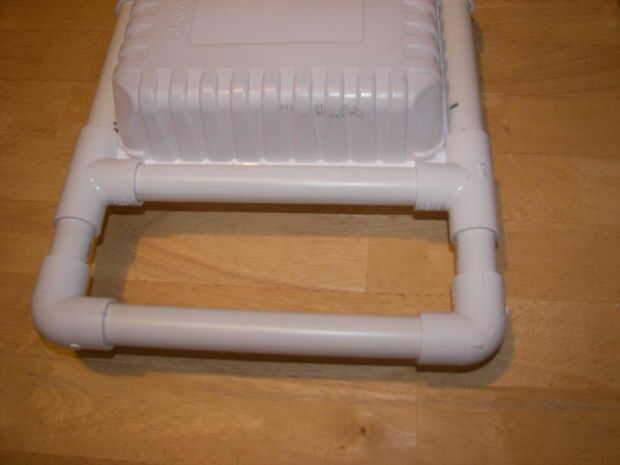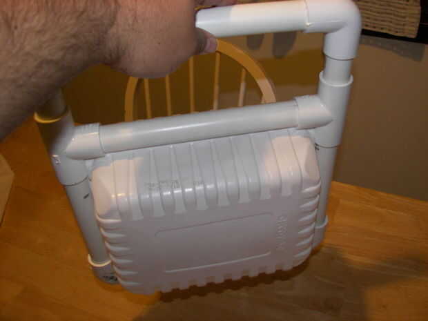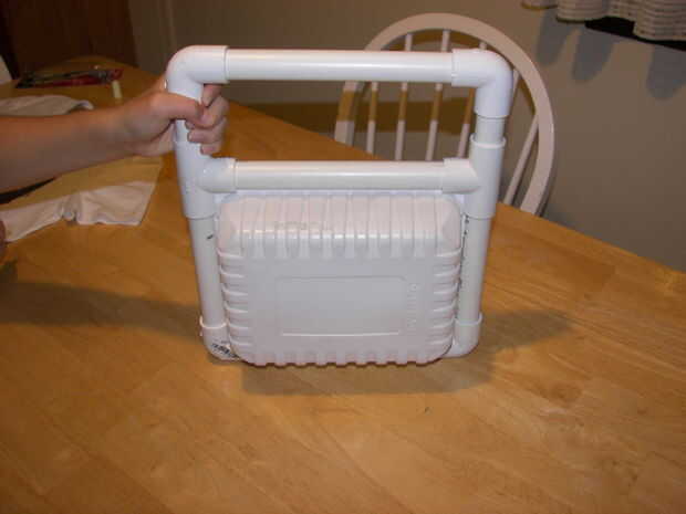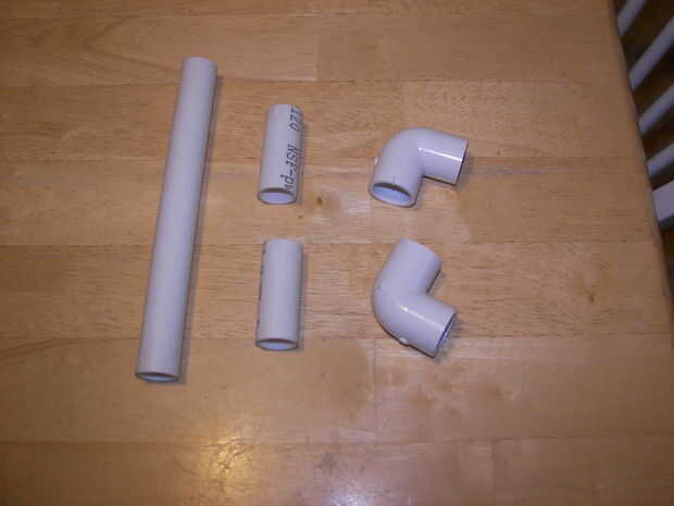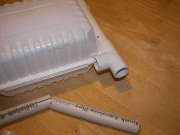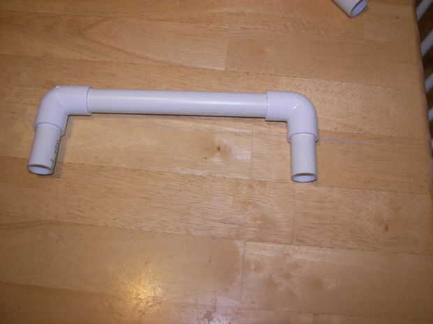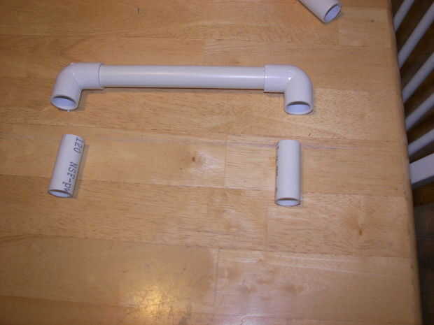 4) seco encajar los codos últimos 2 y 3 longitudes de unslitted tubo de PVC para hacer una manija. Haga cualquier ajuste a longitudes ahora.