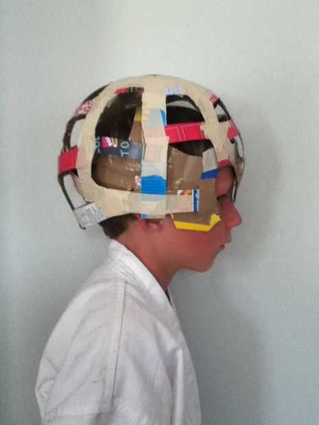A continuación, agregue más travesaños comprobación de forma y tamaño. Colocar piezas de soporte para evitar colapso. Desde allí, seguir añadiendo piezas para conectar todo junto. En el siguiente paso, cubre todo con cinta de enmascarar y el cartón más allí es el más robusto y redondo será.