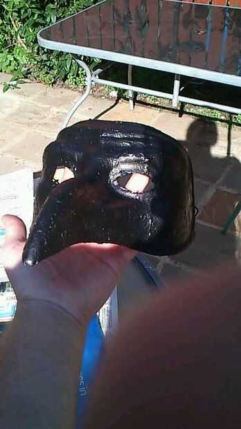 Después de la mascarilla ha llegado, es tiempo de hacer la pintura base. Hazte un pincel y pintura negra de acrílico y pintura hasta el contenido de su corazón.