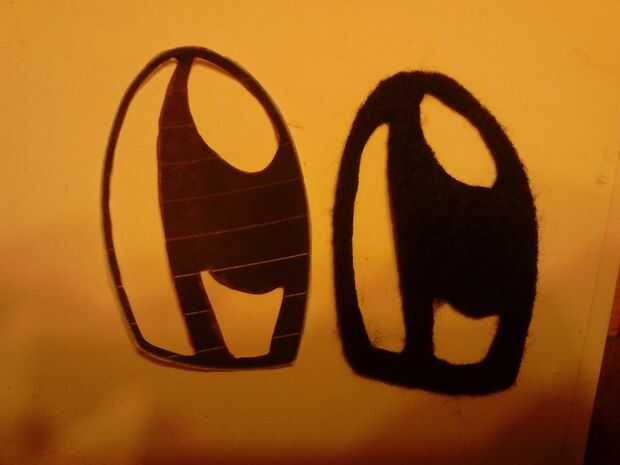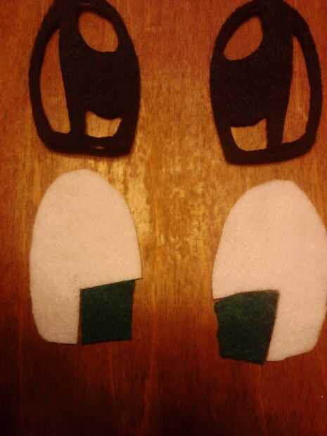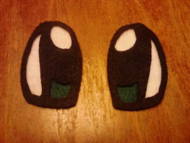 Ahora traza la boca, nariz, cejas y sección negra de los ojos en fieltro negro y cortar. Corte cuidadosamente los orificios de la sección negra de los ojos como se ve en las fotos.