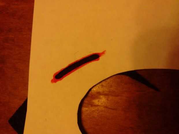 Trazar las formas de ojo otra vez, esta vez en blanco y corte. Alinee la sección negro sobre el blanco y cortar la sección de blanco que se extiende en la parte coloreada del ojo. (la sección cuadrada pequeña en la parte inferior)